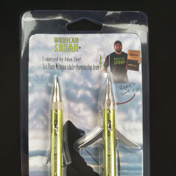 Mohican Sneak Bowfishing Pro Pack. Built to last and endorsed by Adam Thiel 2018 Michigan State Champion. Includes 1 dedicated Gar fish arrow and 1 general purpose Arrow. Head, Arrow and safety slide included.
